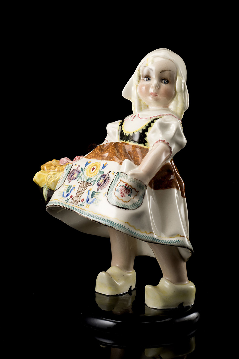 Polychrome underglaze cast ceramic. Manufacture of Essevi, Turin, 1930s. Signed under the base "TORINO ITALIA M.S. VACCHETTI". (h 30 cm.) (slight defects)