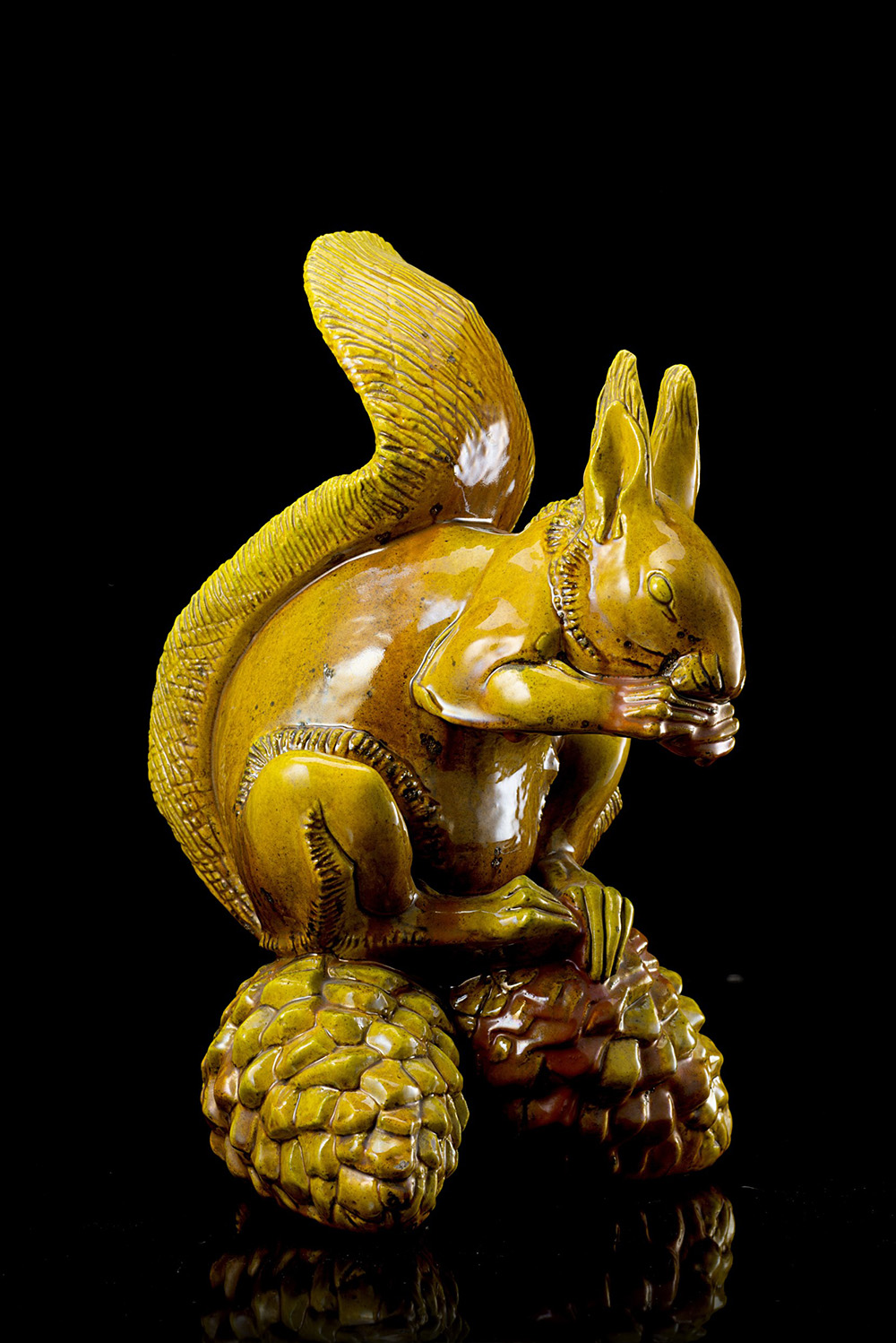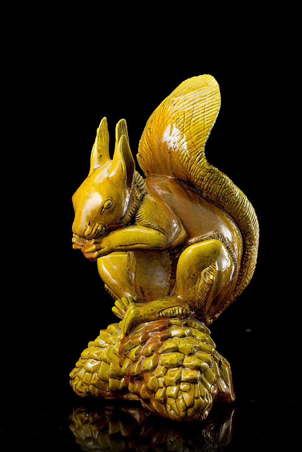 Lenci "Scoiattolo su pigne"Ceramica formata a colaggio e smaltata in...