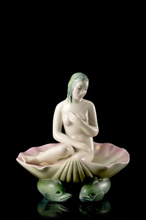Lenci "Venere su conchiglia"Ceramica formata a colaggio e smaltata in...