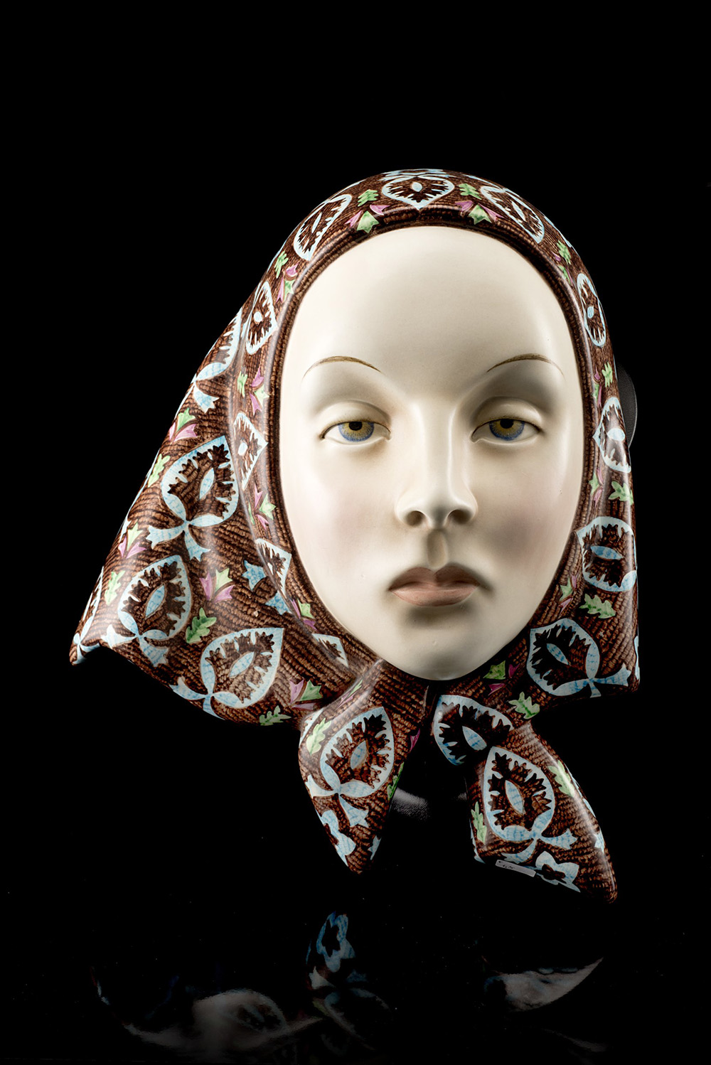 Polychrome opaque cast ceramic. Manufacture of Lenci, Turin, 1930s. Signed "Lenci MADE IN ITALY TORINO" and with the initials "FV" of the decorator. (h 29 cm.) (slight defects)