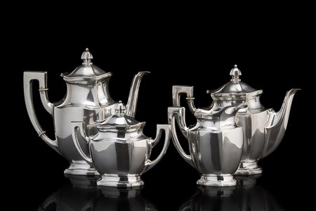 Servizio da tè e caffè in argento composto da caffettiera, teiera,...