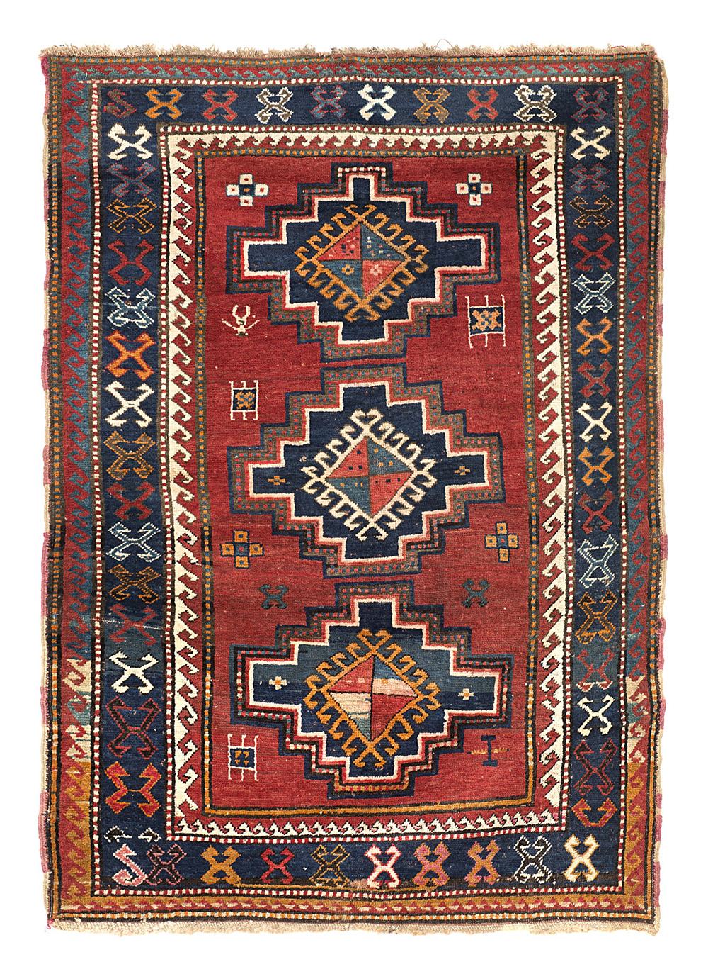 Tappeto Kazak, Caucaso, fine secolo XIX. ?Disegno con tre medaglioni su fondo...