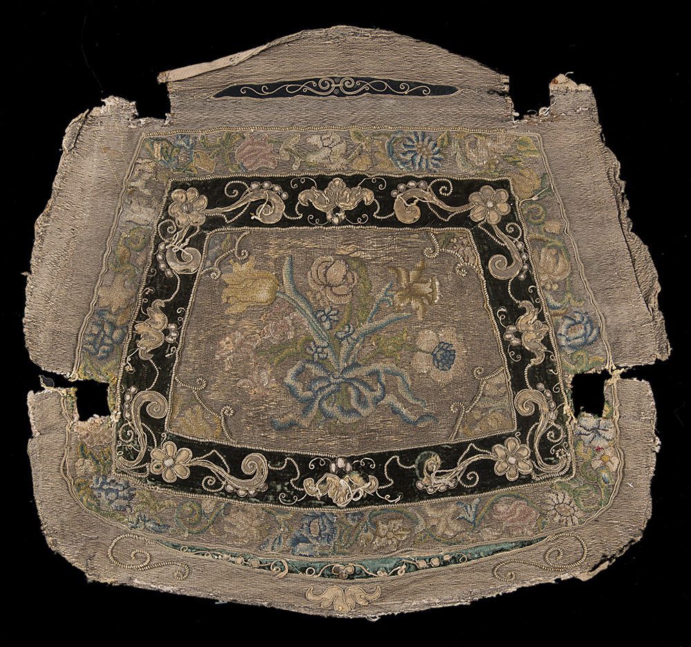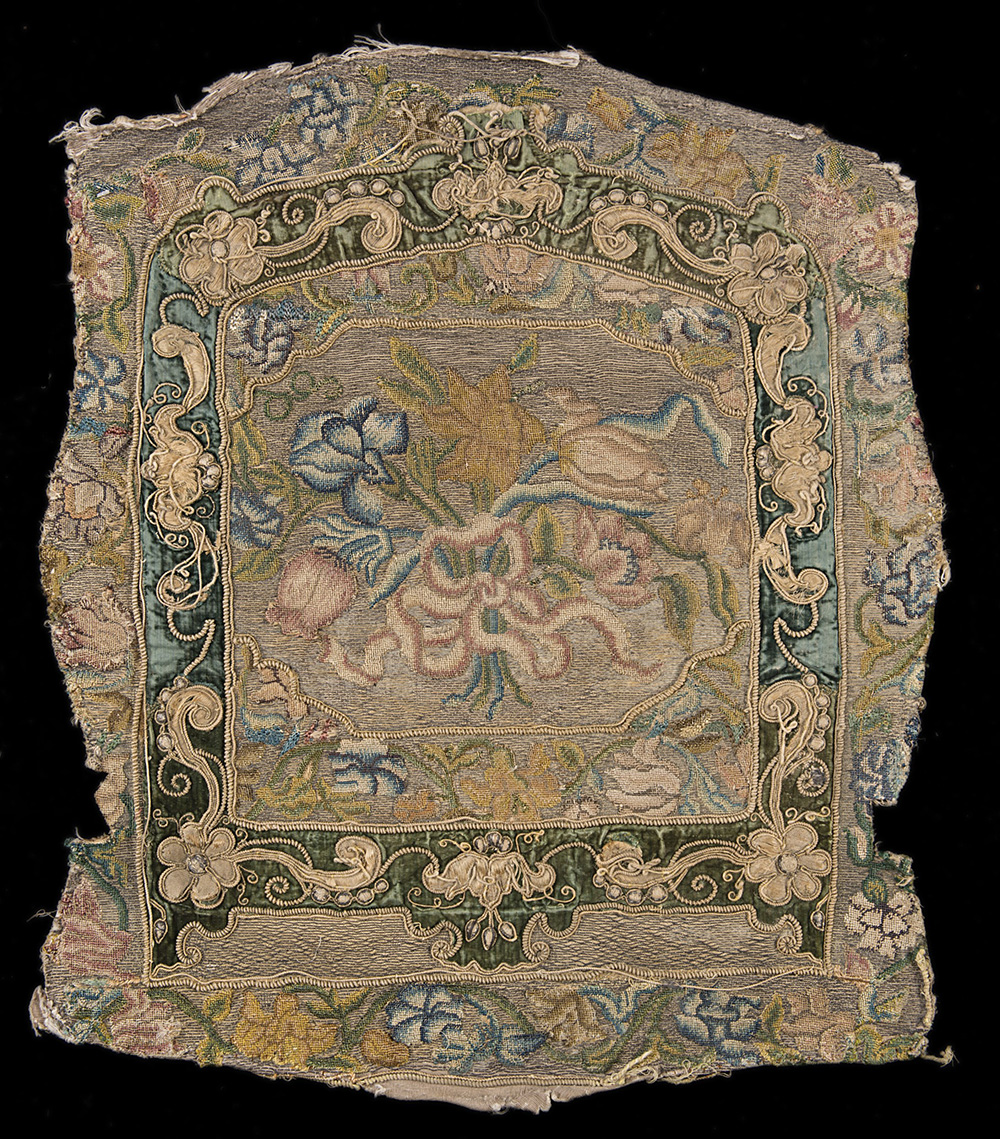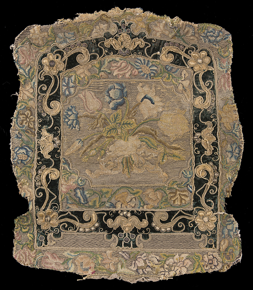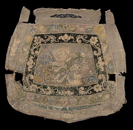 Ricami, Lotto composto da quattro coperture per poltroncine (due schienali e due sedute), Inghilterra, secolo XVII.