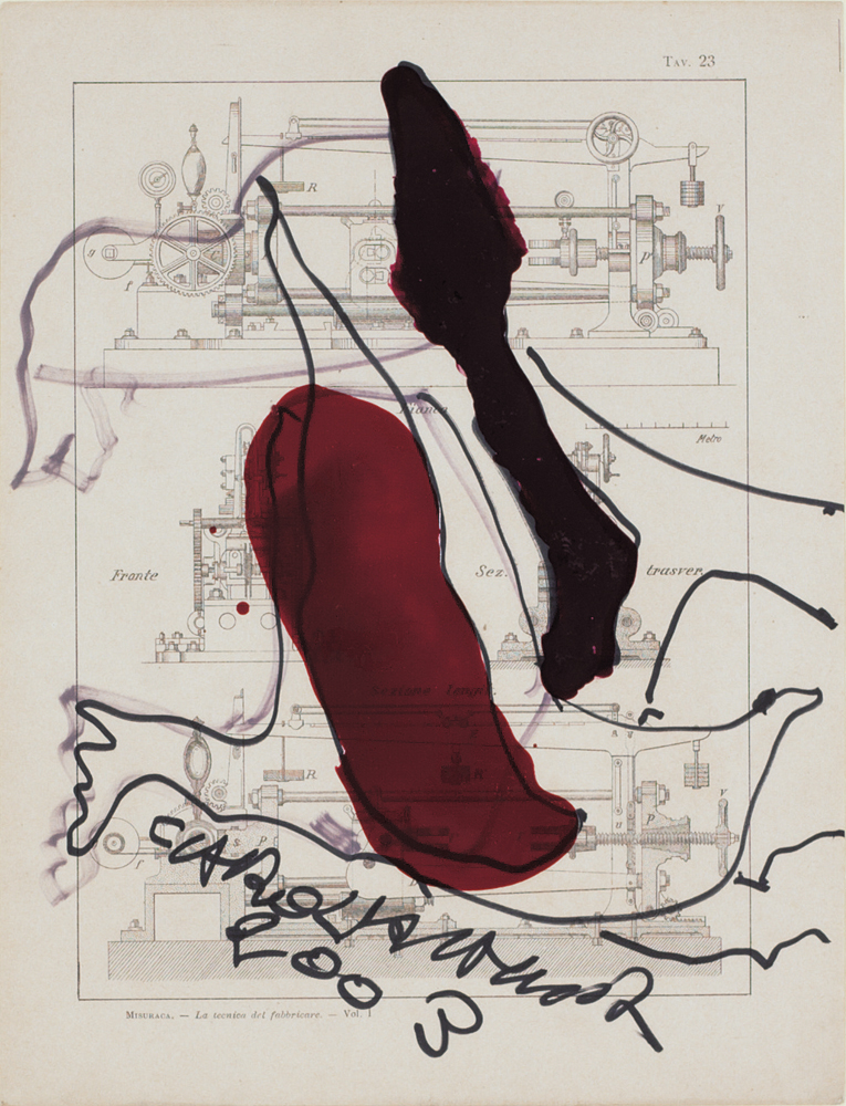 CAROL RAMA Torino 17/04/1918 Senza titolo, 2003 smalti e pennarello su pagina di volume cm. 29x20, firma e anno in basso.