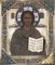 Icona raffigurante Cristo benedicente con riza in argento e smalti....