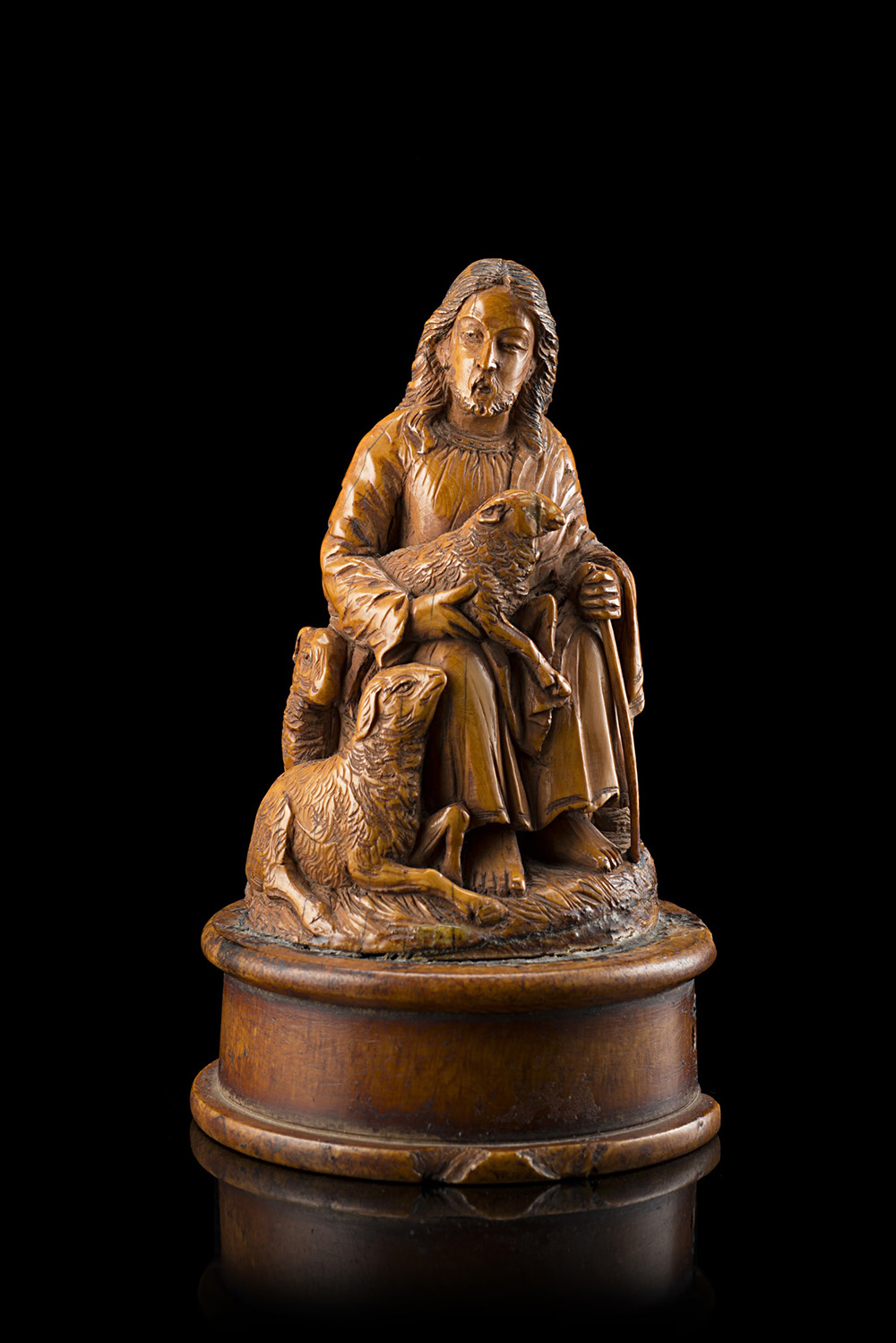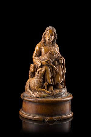 Arte del secolo XVII "Pastore" scultura in avorio (h. cm 10) base lastronata...