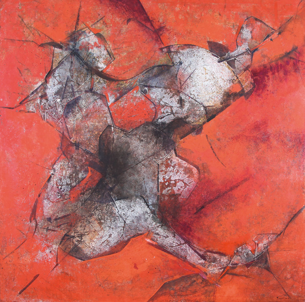 SALVATORE PROVINO Bagheria (Pa) 04/06/1943 Segni della materia nel tempo, 1989 olio su tela cm. 200x200, firma in basso a destra, titolo, firma e anno al retro, dichiarazione d'autenticità dell'artista e archivio Meeting Art (VC) su foto, pubblicato sul catalogo della mostra "Provino opere dal 1979-1989" a cura di Fabrizio D'Amico, Edizioni Visionart, tenutasi presso il Complesso Monumentale San Michele a Ripa dal 06 al 29 Ottobre 1989, pagina 84, opera senza cornice.