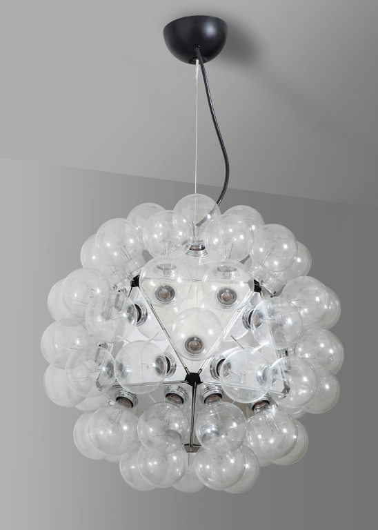 Alluminio lucidato stampato, 60 lampadine a vista.