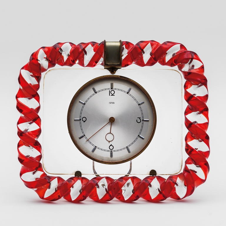 CARLO SCARPA, VENINI Un orologio da tavolo, circa 1937. Cornice in cristallo...