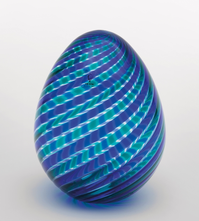 VENINI Un uovo a canne ritorte bicolori, 1984. Marca incisa "venini italia...