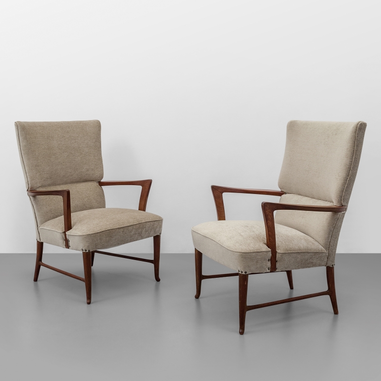 PAOLO BUFFADue poltrone, inizi anni '50. Legno di ciliegio, imbottiture...