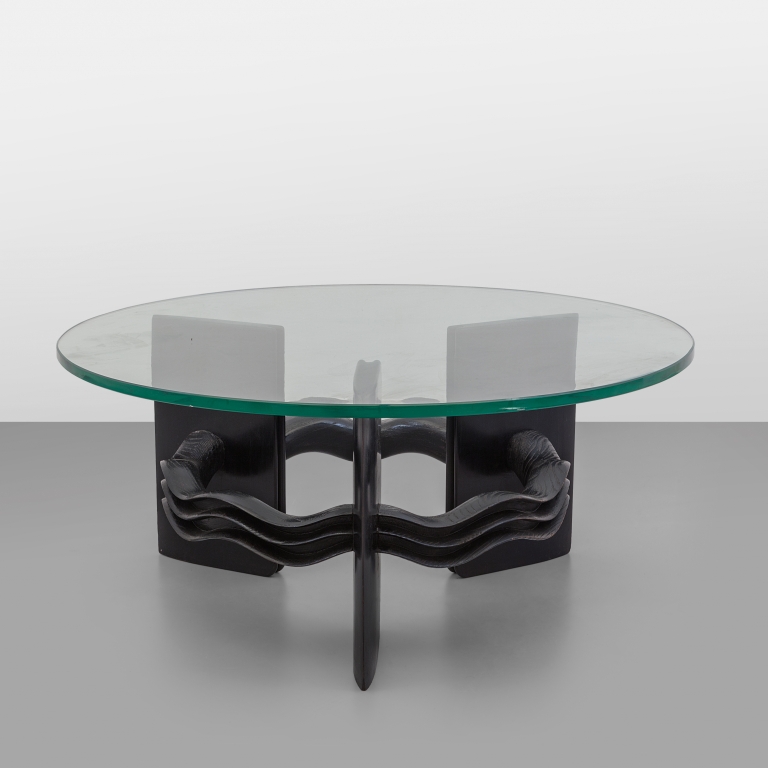 Carved painted wood and crystal top.