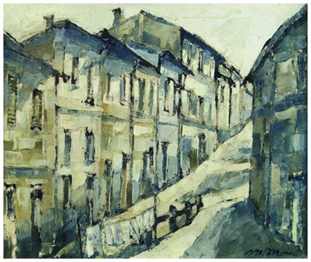M. MOSCA Strada suburbana Olio su tela 50 x 60. Firma in b. a d., titolo sul verso. ALLA MAGGIORE OFFERTA