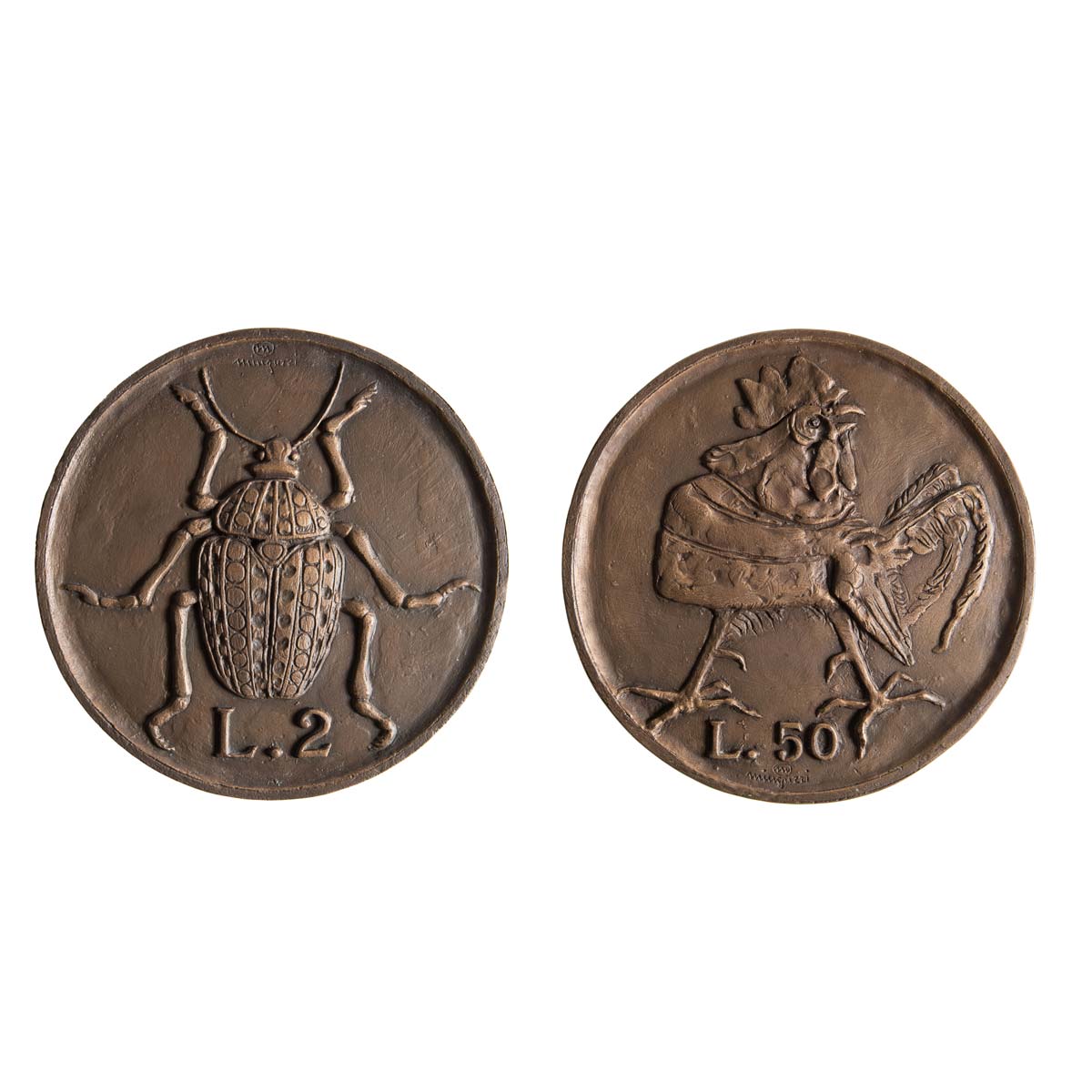 Luciano Minguzzi (1911 - 2004), “Gallo-50 Lire” e “Insetto-2 Lire”, Anni ‘70....