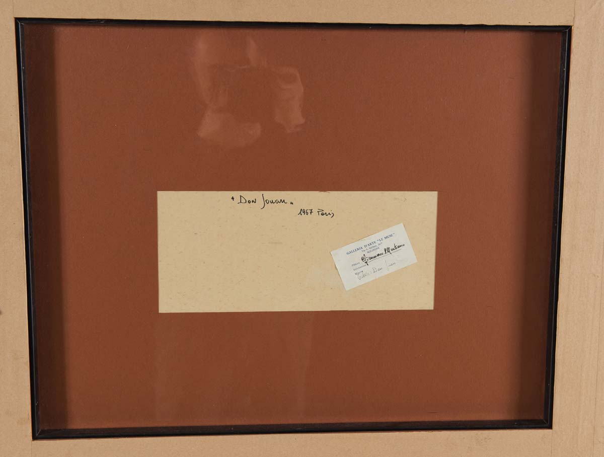 Gian Marco Montesano (1949), “Don Jouan”, 1967. Base fotografica dipinta, firmaao in basso al centro Montesano, al retro datata e titolata ‘Don Jouan 1967 Paris’, H cm 40x53 Reca etichetta Galleria d’Arte Le Muse – Bologna
