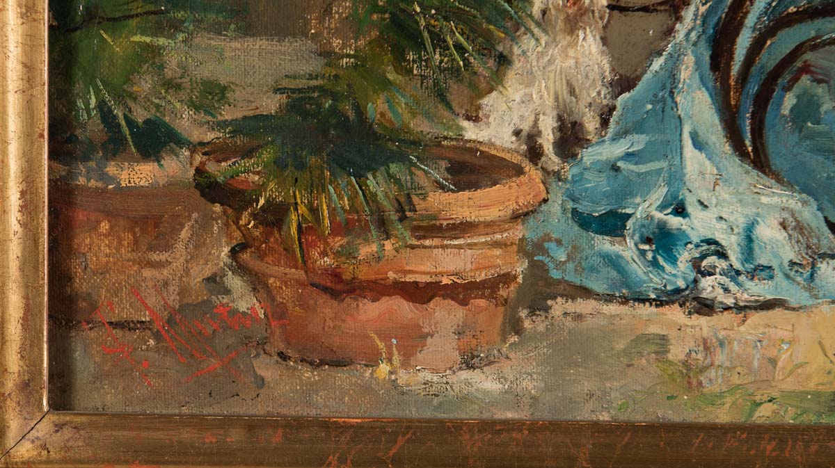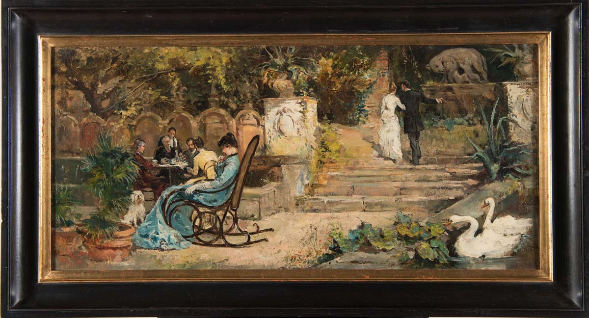Tomàs Munoz Lucena (1860 - 1943), “Giardino Romano”. Olio su tela, firmato in basso a sinistra T. Munoz, H cm 29.5x64