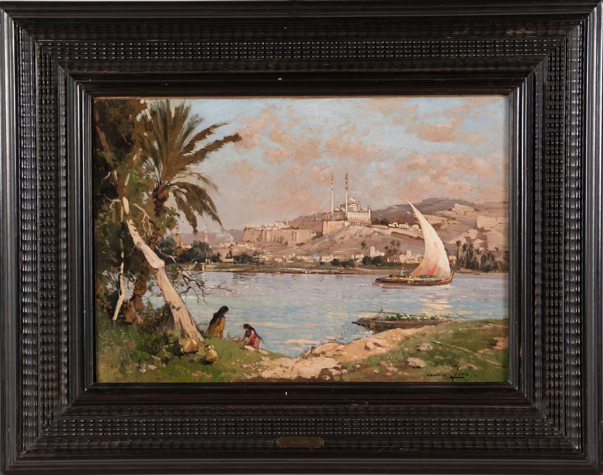 Maurice Levis (1860 - 1940), “La riva del Nilo Al Cairo”. Olio su tavola,...