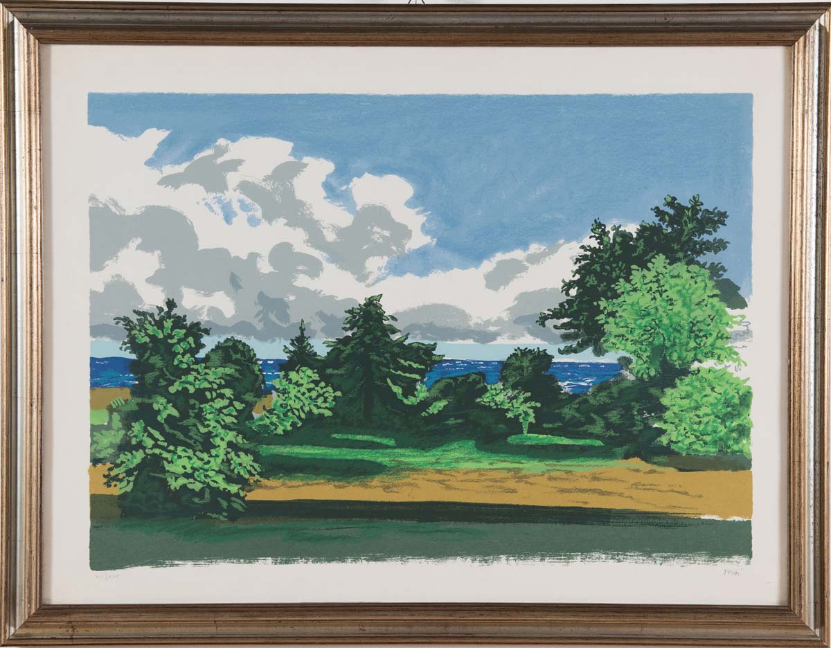 Alberto Sughi (1928-2012), “Paesaggio”. Litografia a colori su carta, firmata in basso a destra Sughi e timbro a secco, numero di tiratura in basso a sinistra XII/XXX, H mm 595x795, lastra mm 500x700