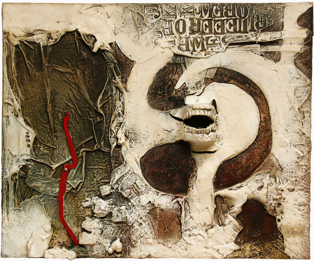 Lucio DEL PEZZO (Napoli 1933-01-01 ) Senza titolo 1960 tecnica mista su tavola cm. 44 x 53Firma, data "Del Pezzo 60" (in basso a destra) Autentica dell'artista su fotografia