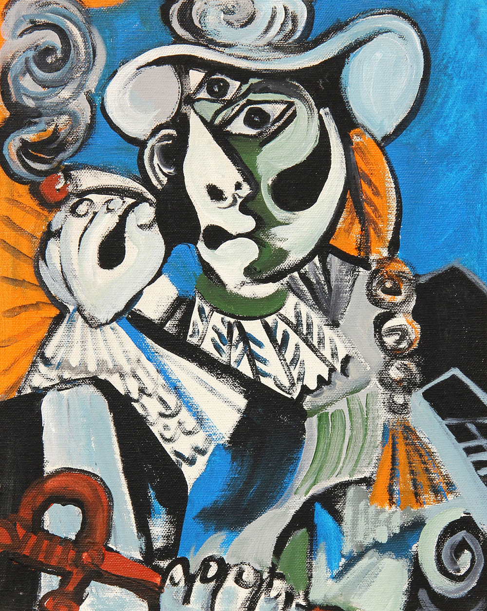 Domenico CANTATORE (Ruvo di Puglia 1906-03-16 Parigi 1998-05-22) Da Picasso acrilico su tela cm. 40 x 30Titolo, firma "Da Picasso, Cantatore" (al retro) Autentica dell'artista su fotografia con timbro dell'Archivio Generale a cura della Galleria il Mappamondo, Milano, con numero 419