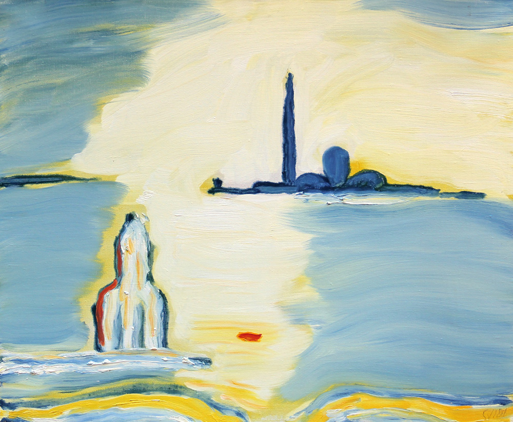 Virgilio GUIDI (Roma 1891-04-04 Venezia 1984-01-07) Bacino S. Marco 1981 olio su tela cm. 50 x 60F. Bizzotto, D. Marangon, T. Toniato "Virgilio Guidi. Catalogo generale dei dipinti", vol. III, Electa, Milano 1998, p. 1660, ill. 96Firma "Guidi" (in basso a destra) Titolo, firma "Bacino S. Marco, Guidi" (al retro) Autentica dell'artista su fotografia