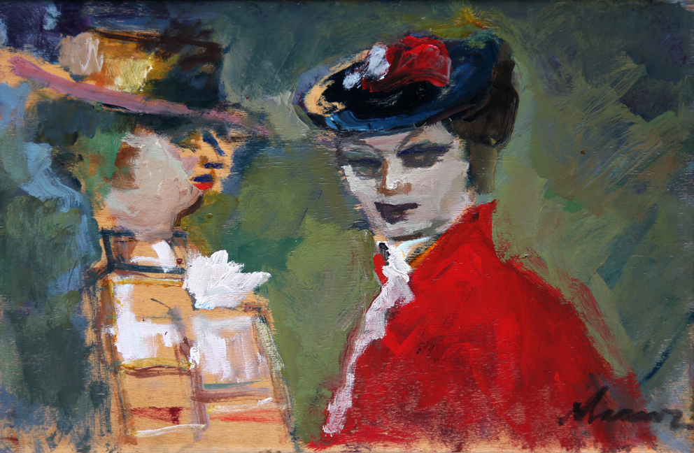 Mino MACCARI (Siena 1898-11-24 Roma 1989-06-16) Senza titolo 1970 olio su tavola cm. 29.5 x 43.5Firma "Maccari" (in basso a destra) Dedica, firma, data, firma "Maccari, da me eseguito circa il 1970, Mino Maccari" (al retro) Autentica dell'Archivio Mino Maccari, con rep. n. 1.004 Autentica dell'artista su fotografia