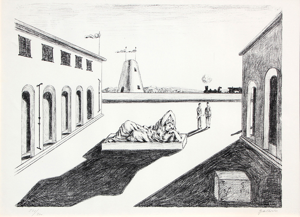 Giorgio DE CHIRICO (Volos 1888-07-10 Roma 1978-11-20) Piazza d'Italia litografia cm. 50.5 x 70E. Brandani, "Giorgio de Chirico. Catalogodell'opera grafica 1969/1977", Edizioni Bora, Bologna, 1990, p. 88Edizione di 300 esemplari +12 P.A. Firma "G. de Chirico" (in basso a destra)