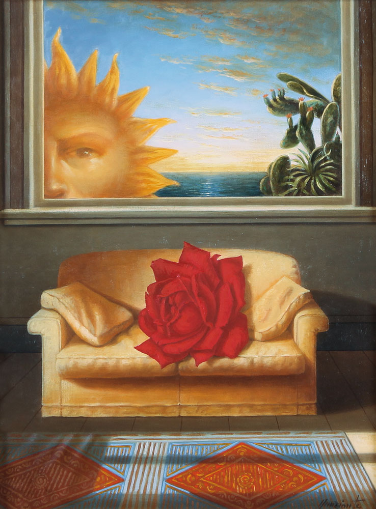 ANTONIO NUNZIANTE Napoli 1956 Dialoghi d'amore, 2005 olio su tela cm. 40x30, firma in basso a destra, titolo, firma, anno e archivio al retro, dichiarazione d'autenticità dell'artista e archivio numero AN 005-938A a cura della Metamediale di Giaveno (TO) su foto.