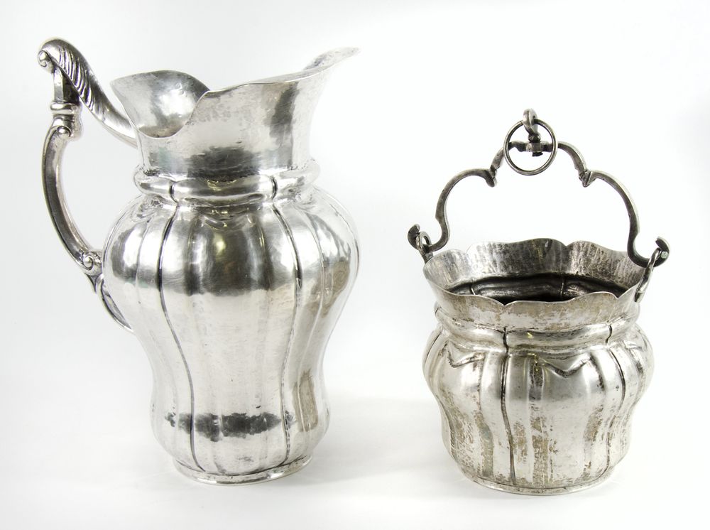 Lotto in argento composto da grande brocca e secchiello con manico. H. max cm. 25. gr. 1650.