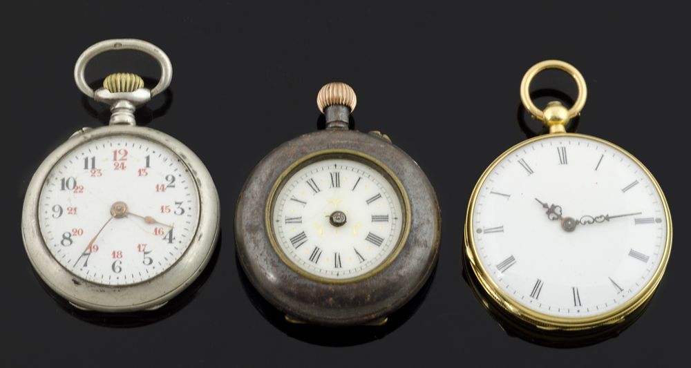 Lotto di 3 orologi da tasca in oro e argento.