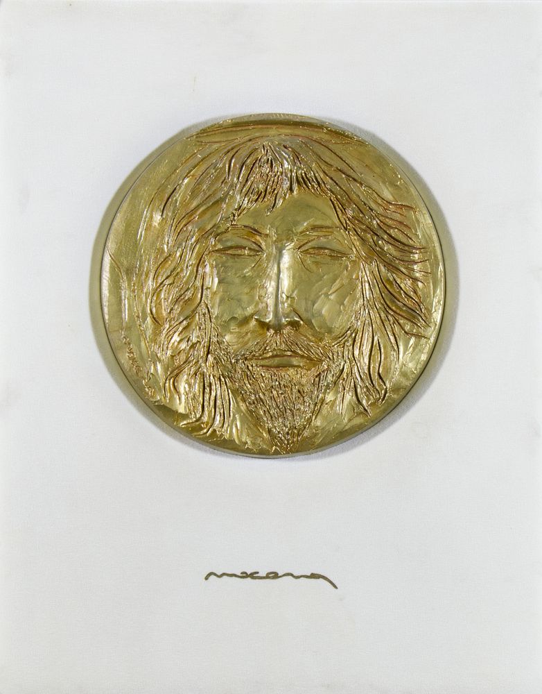 Antonio Nocera 1949 "Cristo" diam. cm. 24 - bassorilievo in bronzo dorato Firmato al centro