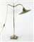 Lampada da tavolo regolabile in ottone con paralume in metallo verde. H. cm. 64.