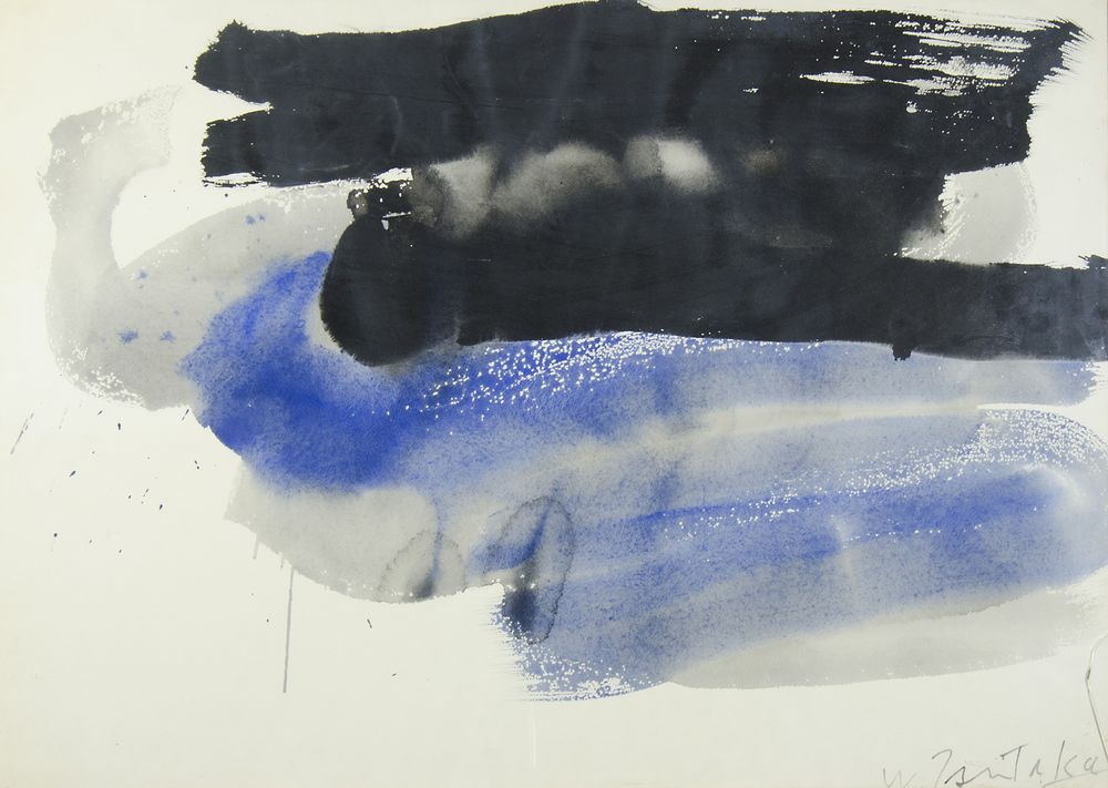 Waichi Tsutaka 1911-1995 Lotto di 2 tempere su carta, cm. 48x68, entrambi...