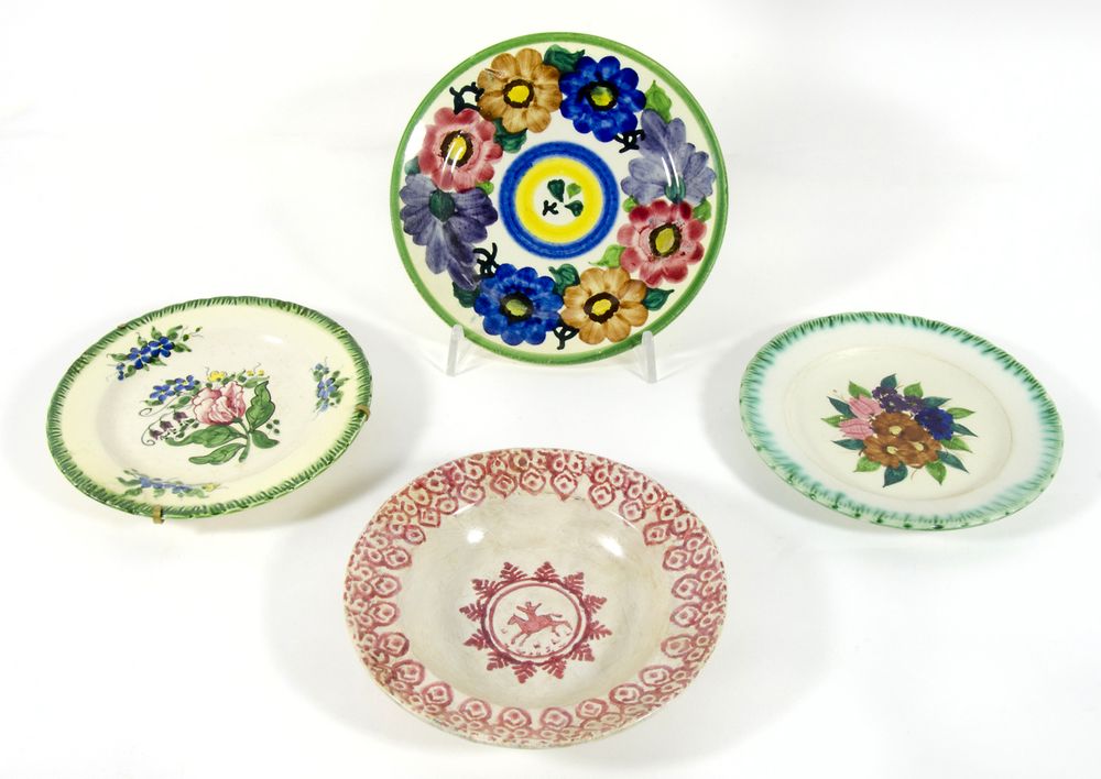 Galvani: lotto di 4 piatti in ceramica policroma. Misure diverse, marcati.