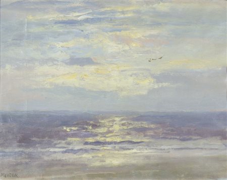 Oscar Mendlick 1871-1963 "Marina al tramonto" cm. 38x48 - olio su tela...
