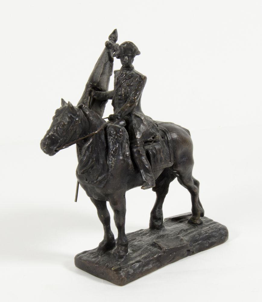 Scultura in bronzo a patina scura raffigurante Napoleone a cavallo. H. cm. 19.
