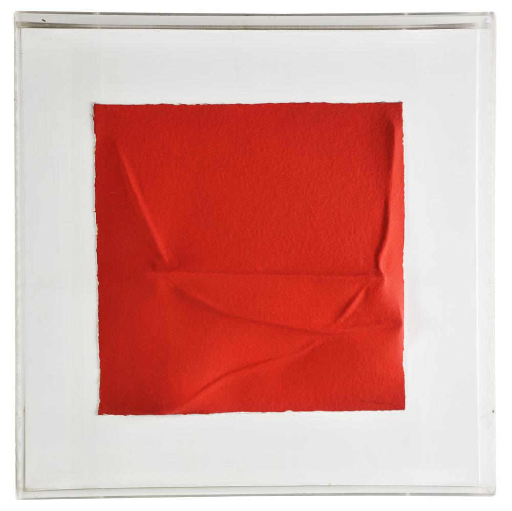Bonalumi Agostino, Rosso estroflessione su carta, cm 30x30 sul fronte: firma eseguita nel 1995 L'opera accompagnata da autentica dell'Archivio Bonalumi