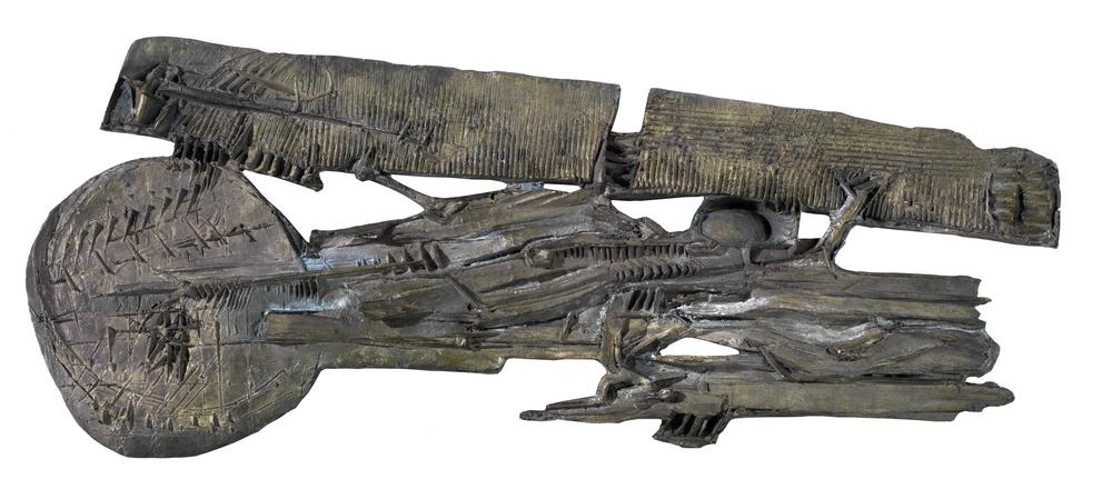 Pomodoro Giò, SENZA TITOLO bronzo, cm 43x102x1,5 eseguito nel 1960 L’opera è accompagnata da autentica dell’Archivio Giò Pomodoro su fotografia con il n. 00421 Provenienza Collezione privata, Milano Collezione privata, Cuneo