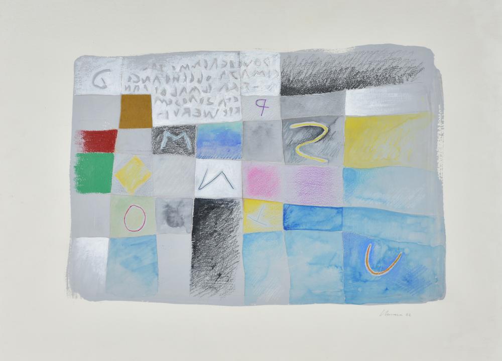 Nucara Renzo, Senza titolo tecnica mista su cartoncino, cm 57x76 sul fronte: firma e data eseguita nel 1982
