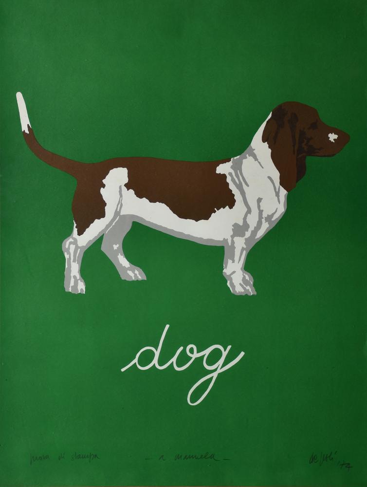 De Poli Fabio, Dog litografia su carta, cm 60x45 esemplare prova di stampa sul fronte: firma, data e dedica eseguita nel 1974