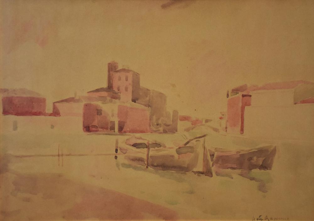 Ravenna Juti, Senza titolo acquarello su cartone, cm 35x50 sul fronte: firma