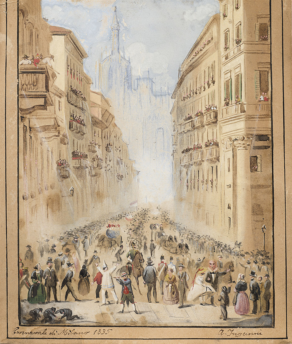 Angelo Inganni (Brescia 1807 - Gussago (BS) 1880) "Carnevale di Milano" 1835...