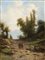 Carlo Jotti (Milano 1826 - 1905)"Paesaggio con figure"olio su cartone (cm...