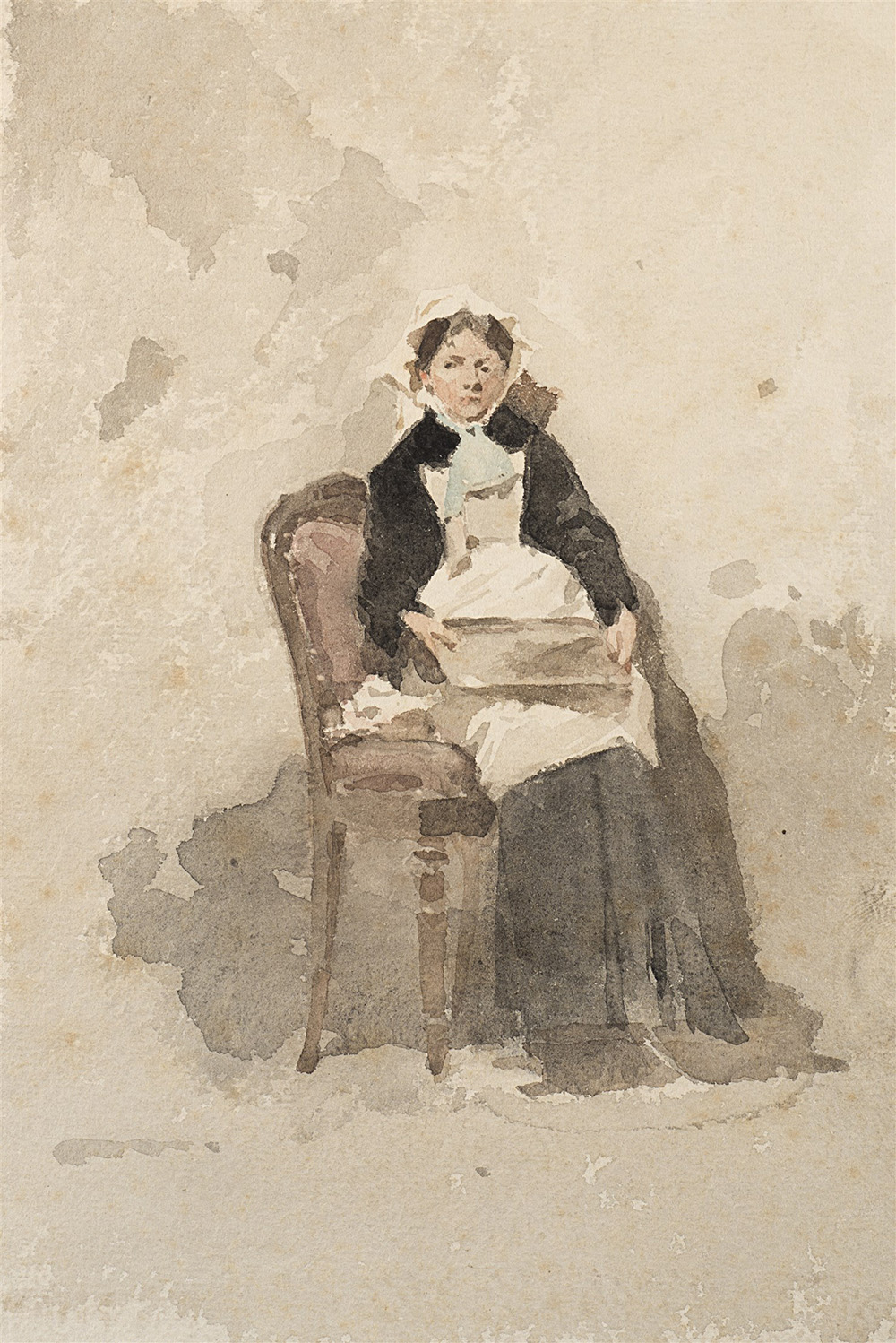 Filippo Carcano (Milano 1840 - 1914)(Attribuito)"Donna seduta"acquerello su...