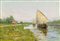 Guglielmo Micheli (Livorno 1866 - 1926)"Barconi lungo il canale"olio su...