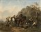 Wouterus Verschuur (Amsterdam 1812 - Vorden 1874)"La sosta" olio su tavola...