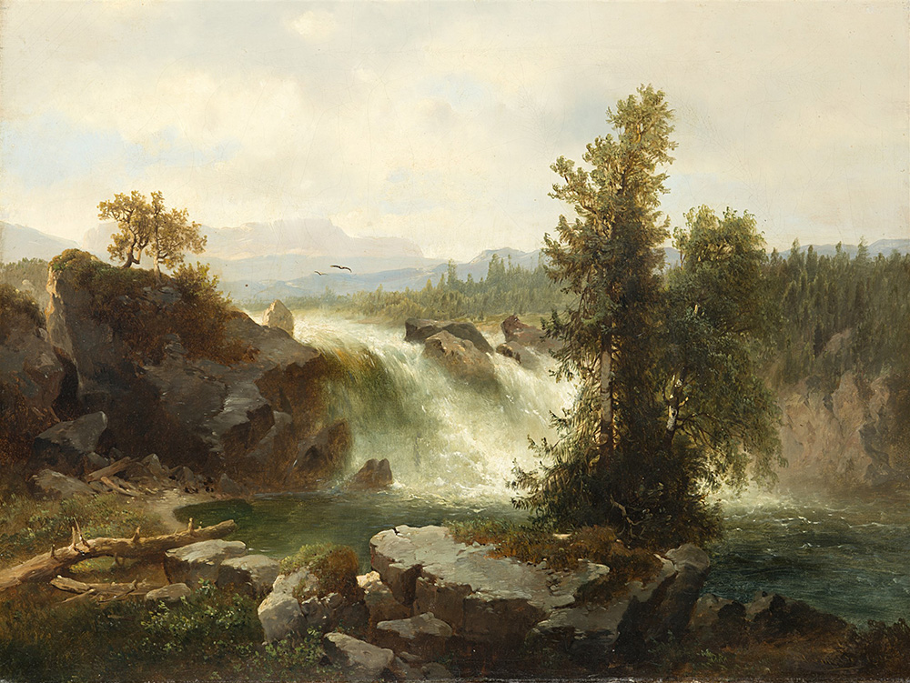 Firma Indecifrata"Paesaggio con cascata"olio su tela (cm 56x74)Firmato e...