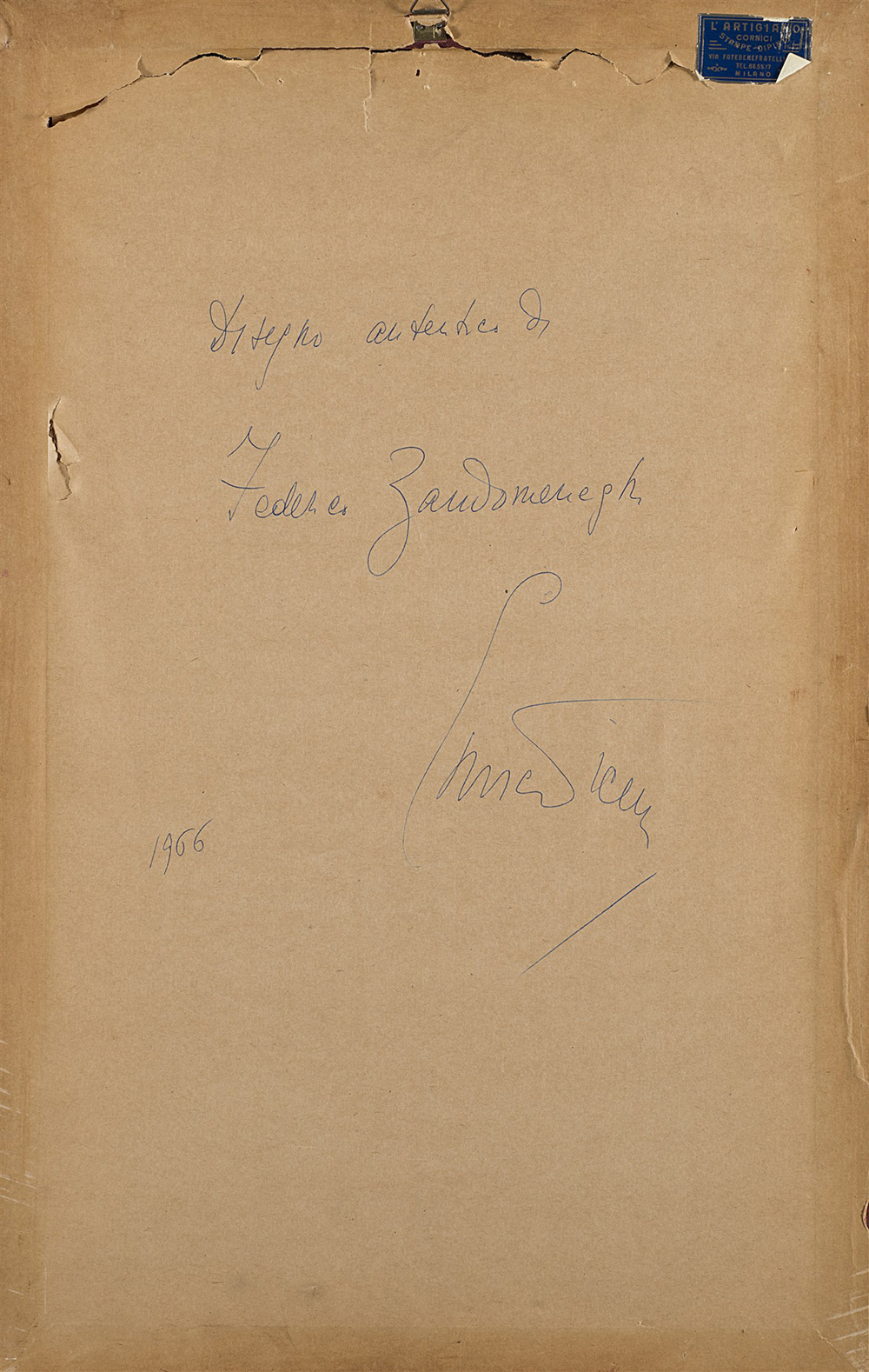 Al retro: autentica autografa di Enrico Piceni datata 1966