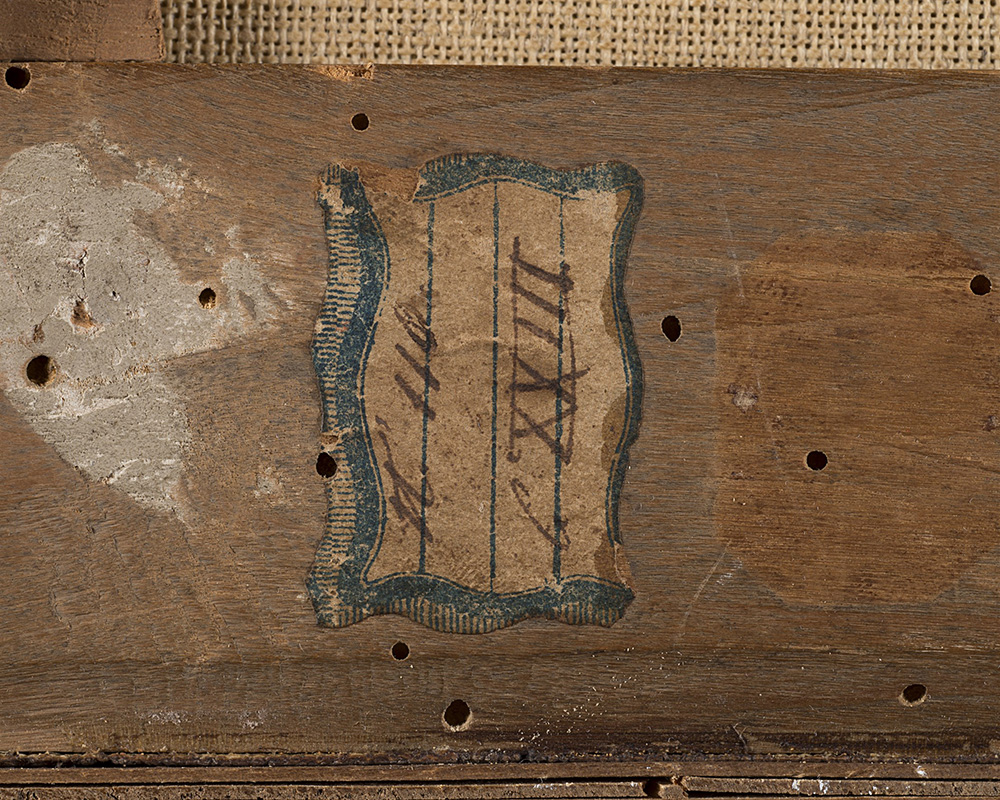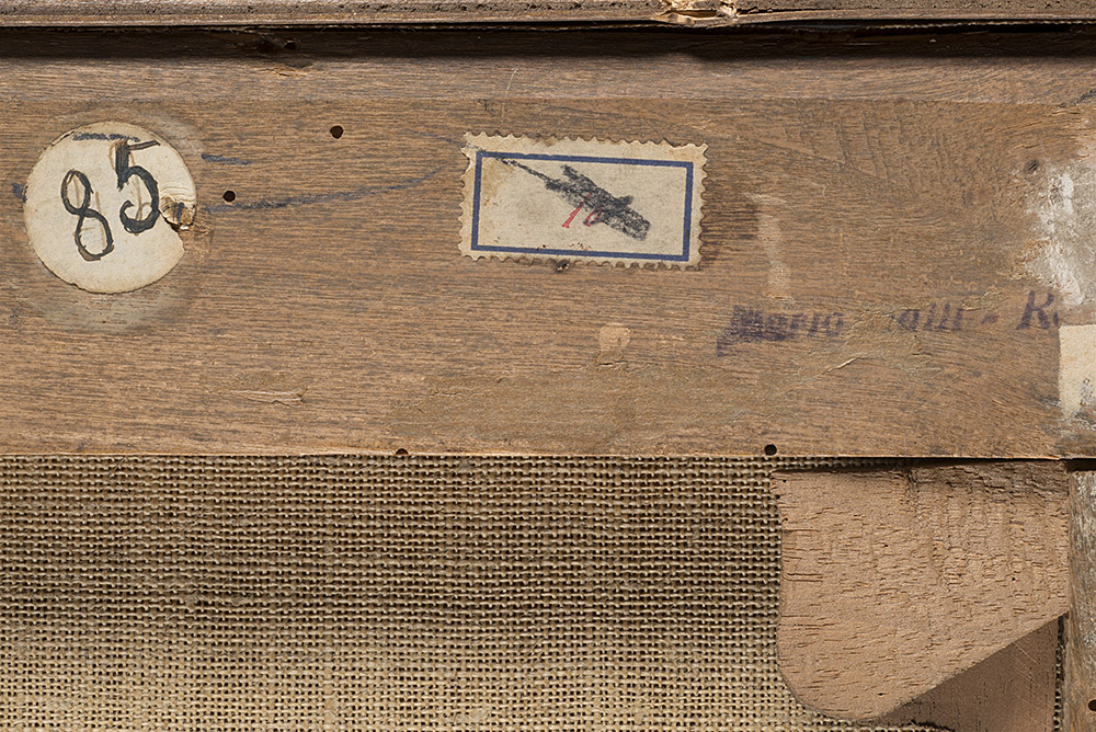 Al retro: cartigli, timbri ed iscrizione di Giovanni Malesci