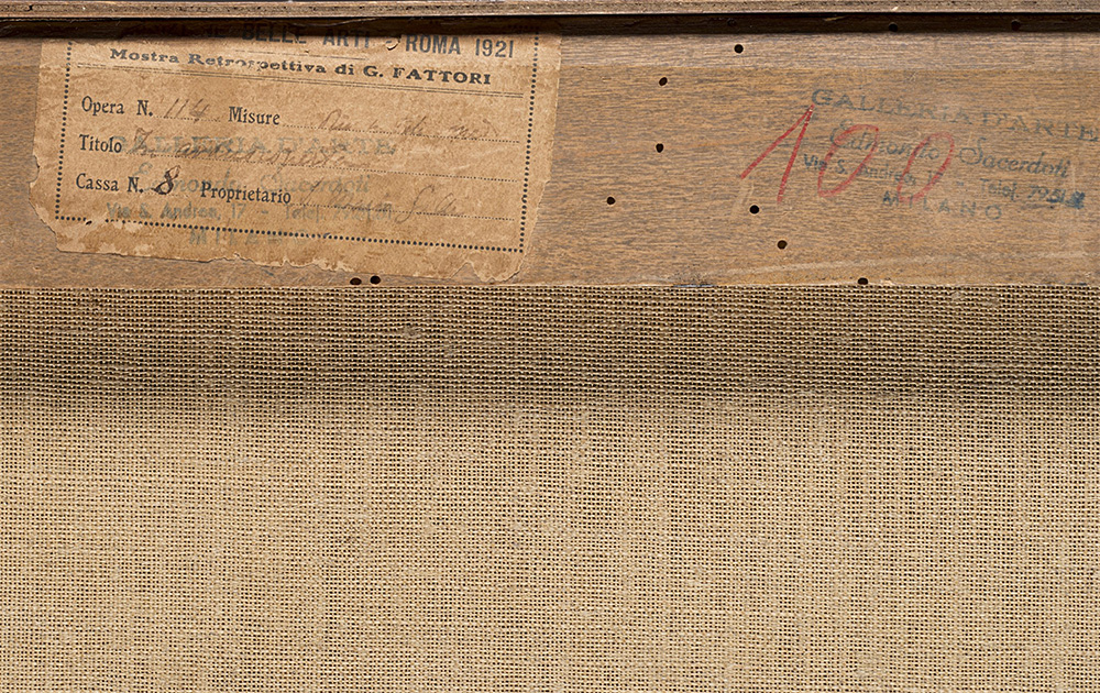 1921, Esposizione Belle Arti Roma "Mostra retrospettiva di Giovanni Fattori". Cartiglio al retro;